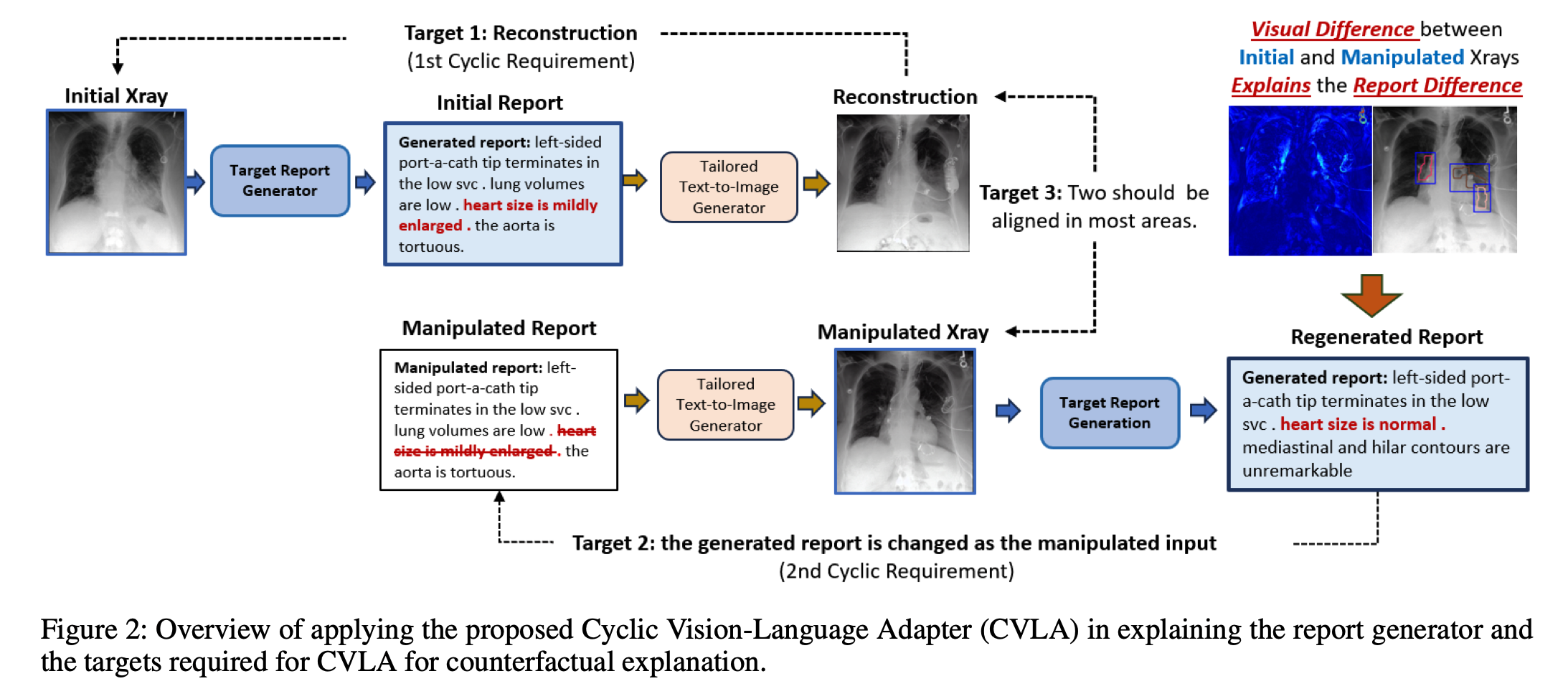 Despite significant advancements in report generation methods, a critical limitation remains: the lack of interpretability in the generated text. This paper introduces an innovative approach to enhance the explainability of text generated by report generation models. Our method employs cyclic text manipulation and visual comparison to identify and elucidate the features in the original content that influence the generated text. By manipulating the generated reports and producing corresponding images, we create a comparative framework that highlights key attributes and their impact on the text generation process. This approach not only identifies the image features aligned to the generated text but also improves transparency but also provides deeper insights into the decision- making mechanisms of the report generation models. Our findings demonstrate the potential of this method to significantly enhance the interpretability and transparency of AI-generated reports.